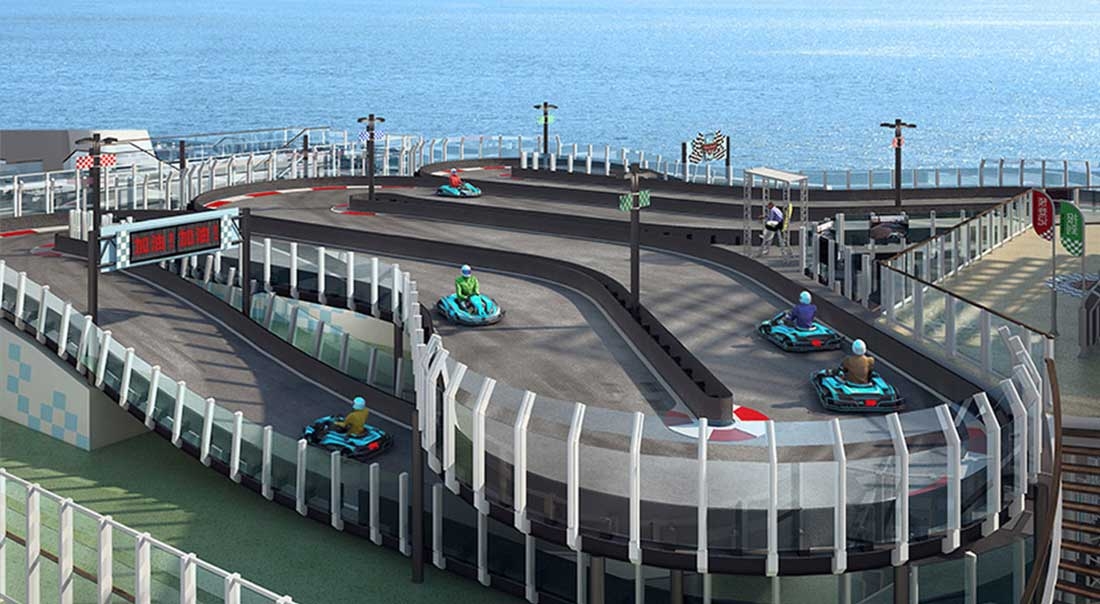 RiMO의 전기 카트는 최신 기술을 활용하여 유람선 위의 강력한 자외선 및 염수 노출이라는 좋지 않은 조건 속에서 최적의 드라이브를 보장합니다. RiMO의 모든 카트는 가장 엄격한 국제 표준에 따라 제작되고 있으며, 카트 트랙은 60m 높이에서 믿을 수 없는 경관을 더하는 것 뿐만 아니라 육지에 기반을 둔 모든 카트 트랙 시설과 동일하게 제작되고 있습니다.